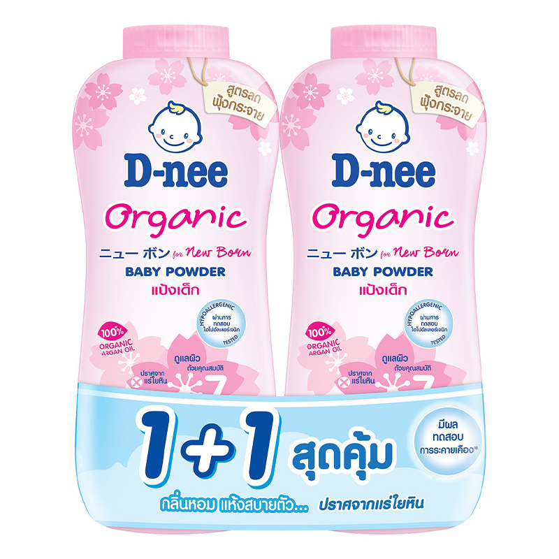 ดีนี่ นิวบอร์น แป้งเด็ก ออร์แกนิค กลิ่นซากุระ สีชมพู 300 G ก. X 2 (แพ็คคู่)