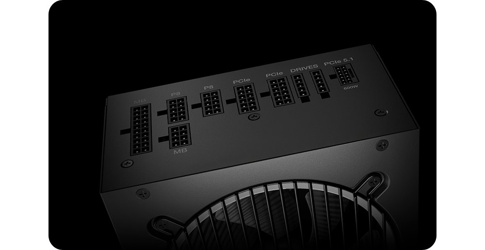 - ATX 3.1 PSU พร้อมการรองรับเต็มรูปแบบสำหรับ GPU PCIe 5.1 และ GPU ที่มีขั้วต่อ 6+2 พิน