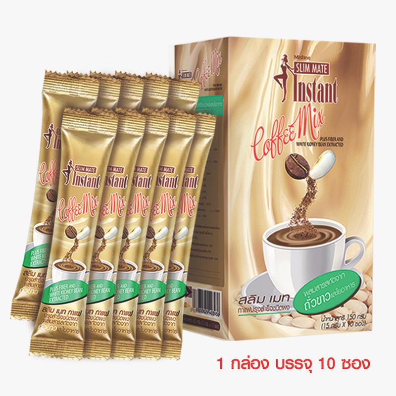 Slim Mate Insant Coffee Mix ผสมใยอาหาร และสารสกัดจากถั่วขาว กาแฟ ปรุงสำเร็จชนิดผง ใช้ซูคราโลสแทนน้ำตาล ผสมใยอาหาร และสารสกัดจากถั่วขาว วิธีรับประทาน ใช้สลิมเมท 1 ซองต่อน้ำร้อน 100 ซมคนให้ละลาย จากนั้นดื่มได้ทันที
