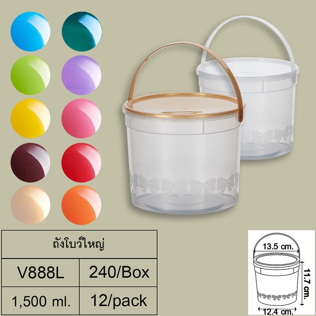 Panda Outlet ถังโบว์ใหญ่ (1,500 ml.) + ฝา + หู คละสี,ไม่เจาะรู (แพ็ค 12 ชิ้น)