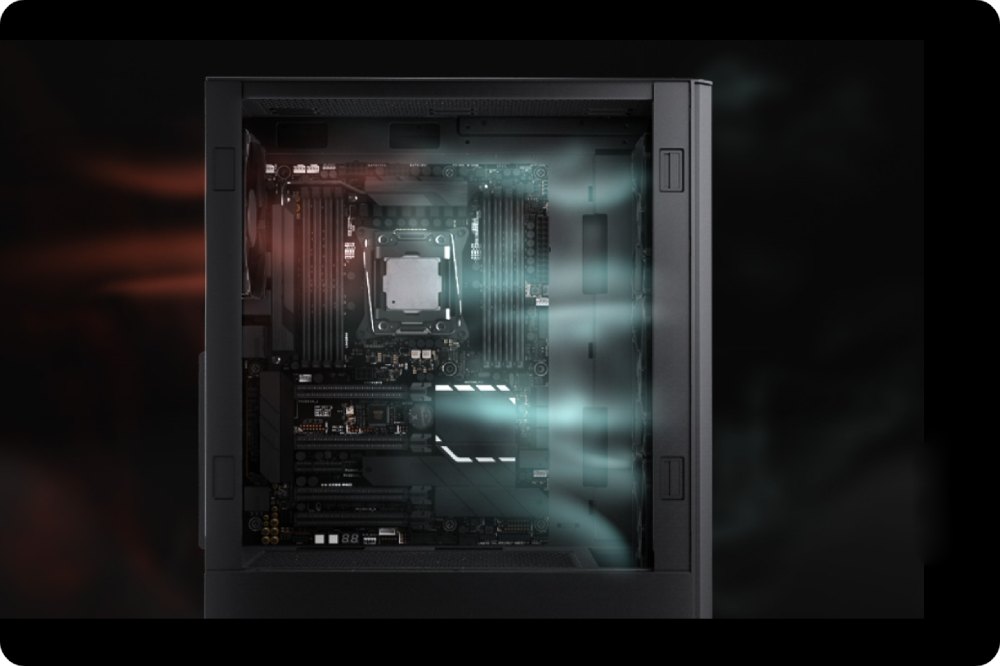 XPG VALOR AIR มีรูปลักษณ์เพรียวบาง สะอาดตา พร้อมดีไซน์เพรียวบางที่ช่วยดึงอากาศเย็นจากภายนอกเข้ามาด้วยพัดลมขนาด 120 มม. จำนวน 3 ตัวที่ติดตั้งไว้ล่วงหน้าที่ด้านหน้า และพัดลมขนาด 120 มม. ที่ด้านหลังเพื่อระบายความร้อน