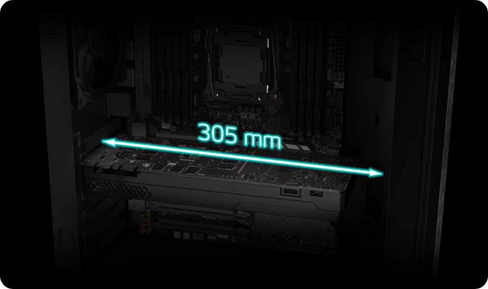ขนาดที่กะทัดรัดไม่กระทบต่อพื้นฐานความเข้ากันได้ของฮาร์ดแวร์เมื่อทำการติดตั้งหรือเลือกการ์ดจอ โดย XPG VALOR AIR สามารถติดตั้งการ์ดจอได้ยาวถึง 305 มม. โดยติดตั้งพัดลมไว้ด้านหน้า