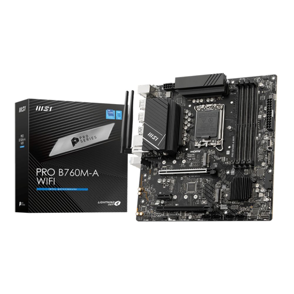PRO B760M-A WIFI ได้รับการออกแบบด้วยเครื่องมือที่ยืดหยุ่นมากมายและโซลูชั่น Wi-Fi ที่สะดวกสบายพร้อมเวอร์ชันหน่วยความจำ DDR5