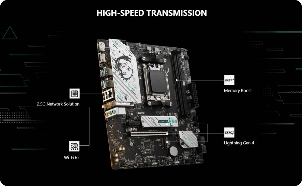 - Onboard LAN Chipset: Realtek RTL8125BG 2.5Gbps LAN + Wi-Fi 6E