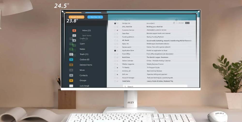 ถือเป็นขนาดที่ดีที่สุดสำหรับโต๊ะทำงานในออฟฟิศและที่บ้านส่วนใหญ่ ซึ่งเหมาะกับการโฟกัสการมองเห็นของมนุษย์เป็นอย่างยิ่ง มอบประสบการณ์ที่ดื่มด่ำและเหมาะกับสรีระ
