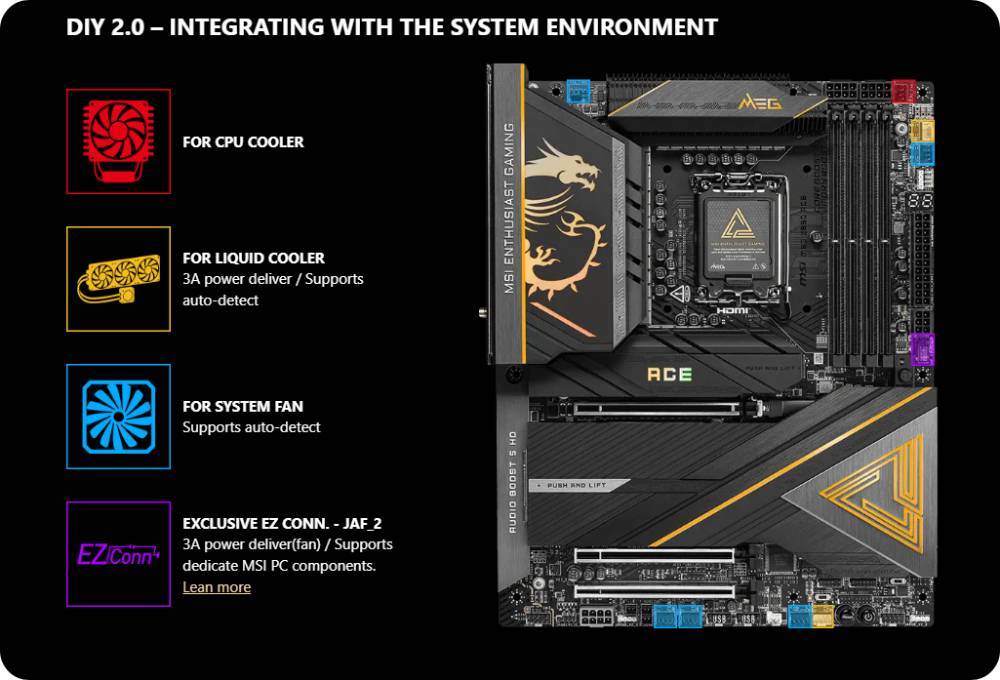 เชื่อมต่อและซิงโครไนซ์กับพัดลมระบายความร้อนของ MSI และเคสที่มีตำแหน่งพินเฮดเดอร์ที่วางในตำแหน่งที่เหมาะสม รวมถึงเฮดเดอร์ปั๊มโดยเฉพาะ