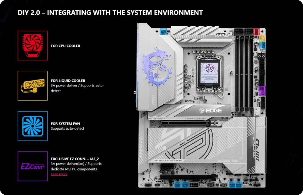 เชื่อมต่อและซิงโครไนซ์กับพัดลมระบายความร้อนของ MSI และเคสที่มีตำแหน่งพินเฮดเดอร์ที่วางในตำแหน่งที่เหมาะสม รวมถึงเฮดเดอร์ปั๊มโดยเฉพาะ