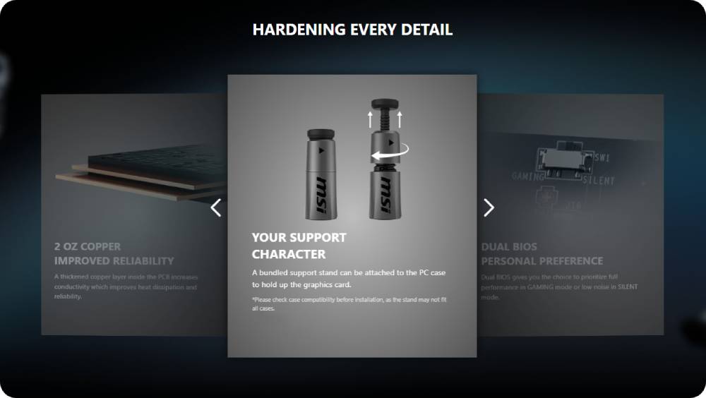 - MSI Center: ซอฟต์แวร์ MSI Center พิเศษช่วยให้คุณตรวจสอบ ปรับแต่ง และเพิ่มประสิทธิภาพผลิตภัณฑ์ MSI ได้แบบเรียลไทม์