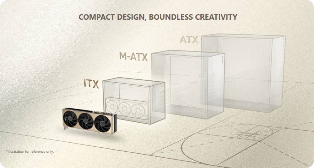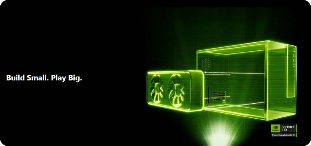 คุณสามารถบรรจุประสิทธิภาพสูงไว้ในขนาดที่เล็กกว่าด้วยการ์ด GeForce Enthusiast SFF-Ready มองหาเคสที่เข้ากันได้กับการ์ด GeForce Enthusiast SFF-Ready เพื่อให้พอดีและปรับแต่งพีซีของคุณให้มีประสิทธิภาพยิ่งขึ้น