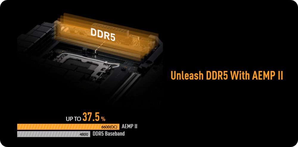 ASUS Enhanced Memory Profile II เป็นฟีเจอร์เฟิร์มแวร์เฉพาะสำหรับโมดูลหน่วยความจำที่จำกัดการใช้งานด้วย PMIC AEMP II ใช้ความสามารถของ CPU และโมดูลหน่วยความจำในการฝึกชิปหน่วยความจำบนชุดอุปกรณ์ของคุณ และยังมีความเร็วสัญญาณนาฬิกาที่เหมาะสมที่สุดเพื่อปลดปล่อยประสิทธิภาพการทำงานได้อย่างง่ายดาย AEMP II สร้างขึ้นโดยใช้กระบวนการฝึกที่ยืดหยุ่น ทำให้ไม่เพียงแต่ปรับหน่วยความจำให้เหนือการตั้งค่าพื้นฐานเท่านั้น แต่ยังรักษาเสถียรภาพการทำงานของระบบได้อีกด้วย ไม่ว่าจะเพื่อให้ได้ประโยชน์สูงสุดจากโมดูลระดับเริ่มต้นหรือเตรียมชุดอุปกรณ์ความเร็วสูงเพื่อประสิทธิภาพสูงสุด