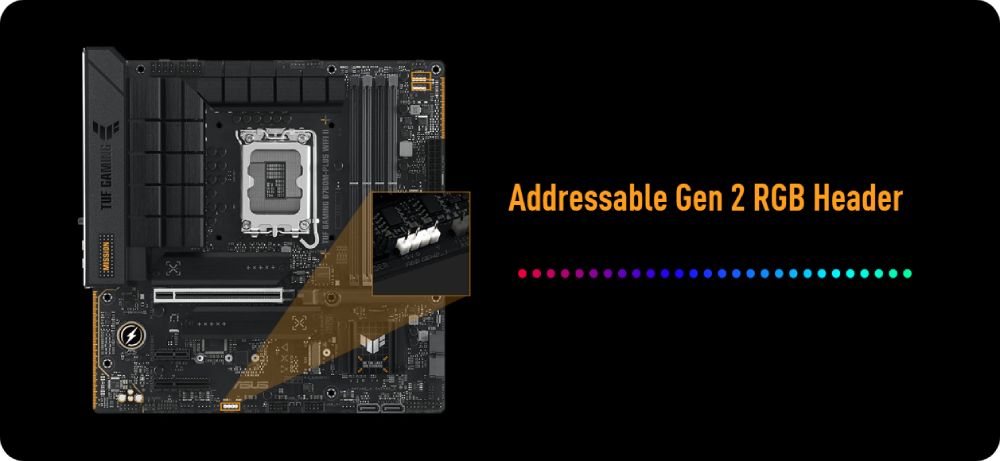 ส่วนหัว Gen 2 RGB ที่สามารถระบุตำแหน่งได้สามส่วนจะรองรับ LED สูงสุด 500 ดวงบนอุปกรณ์ Gen 2 RGB ช่วยให้ Aura Sync ปรับแต่งเอฟเฟกต์แสงได้โดยอัตโนมัติทั่วทั้งระบบของคุณ ส่วนหัวใหม่ยังรองรับอุปกรณ์ Aura Sync ที่มีอยู่เดิมได้อย่างสมบูรณ์