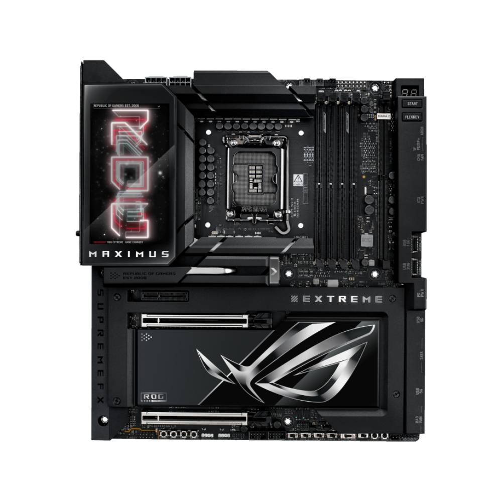 เมนบอร์ด ASUS ROG Maximus Z890 Extreme คือการแสดงออกถึงเทคโนโลยีและประสิทธิภาพของเมนบอร์ดที่ล้ำสมัย ค้นพบขีดจำกัดสูงสุดของโปรเซสเซอร์ Intel Core Ultra Series 2, โมดูล DDR5, การ์ดกราฟิก PCIe 5.0, ที่เก็บข้อมูล NVMe, การเชื่อมต่อ USB, ฟังก์ชัน Thunderbolt และอื่นๆ อีกมากมาย – ทั้งหมดนี้รวมอยู่ในแพ็คเกจที่เพรียวบางพร้อมหน้าจอ LCD สีสันสดใสขนาด 5 นิ้ว ที่สามารถแสดงภาพหรือสถิติระบบสดที่ตรงกับรสนิยมส่วนตัวของคุณได้