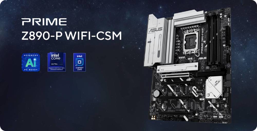 เมนบอร์ด ASUS PRIME Z890-P WIFI-CSM หนึ่งใน ASUS PRIME ซีรีส์ ที่ได้รับการออกแบบอย่างเชี่ยวชาญเพื่อปลดปล่อยศักยภาพทั้งหมดของโปรเซสเซอร์ Intel® Core™ Ultra (Series 2) รุ่นล่าสุด เมนบอร์ด PRIME Z890-P WIFI-CSM มาพร้อมการออกแบบพลังงานที่แข็งแกร่ง โซลูชันการระบายความร้อนที่ครอบคลุม และตัวเลือกการปรับแต่งอัจฉริยะ ช่วยให้ผู้ใช้และผู้สร้างพีซี DIY สามารถเพิ่มประสิทธิภาพการทำงานได้หลากหลายผ่านคุณสมบัติซอฟต์แวร์และเฟิร์มแวร์ที่ใช้งานง่าย เมนบอร์ดได้รับการออกแบบมาให้รองรับ AI ขั้นสูงสำหรับพีซี โดยมอบพลังและการเชื่อมต่อที่จำเป็นสำหรับแอปพลิเคชัน AI ที่ต้องการประสิทธิภาพสูง