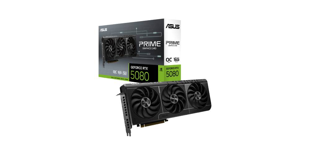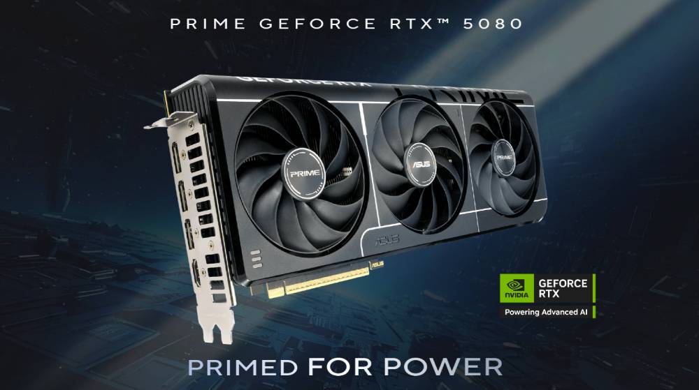 สัมผัสประสิทธิภาพระดับ Primal ด้วย Prime GeForce RTX 5080 การ์ด GeForce สำหรับผู้ที่ชื่นชอบ SFF ที่มาพร้อมกับดีไซน์ช่อง 2.5 ช่องเพื่อรองรับการใช้งานที่กว้างขวาง เสริมประสิทธิภาพด้วยการติดตั้งพัดลมสามตัวเพื่อการไหลเวียนอากาศที่ยอดเยี่ยม และการออกแบบช่องไอน้ำเพื่อการระบายความร้อนที่ยอดเยี่ยม