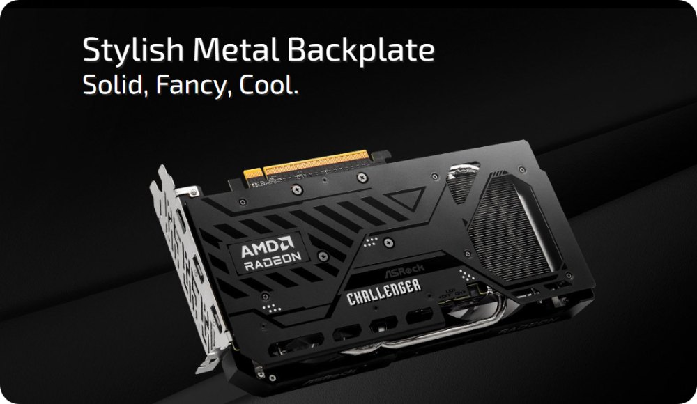 แข็งแกร่ง แฟนซี เท่ห์ ออกแบบมาเพื่อหลีกเลี่ยงการโค้งงอของ PCB รูปลักษณ์ที่เก๋ไก๋ทำให้การ์ดกราฟิกดูเป็นตำนานยิ่งขึ้น นอกจากนี้ยังช่วยเพิ่มประสิทธิภาพการระบายความร้อนด้วยแผ่นระบายความร้อนคุณภาพสูงที่ติดตั้งไว้ด้านหลัง