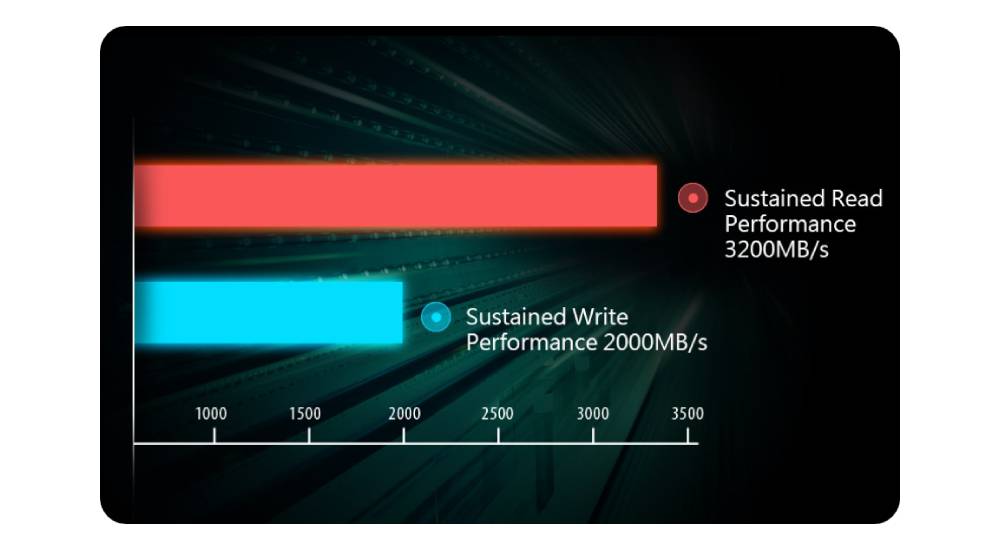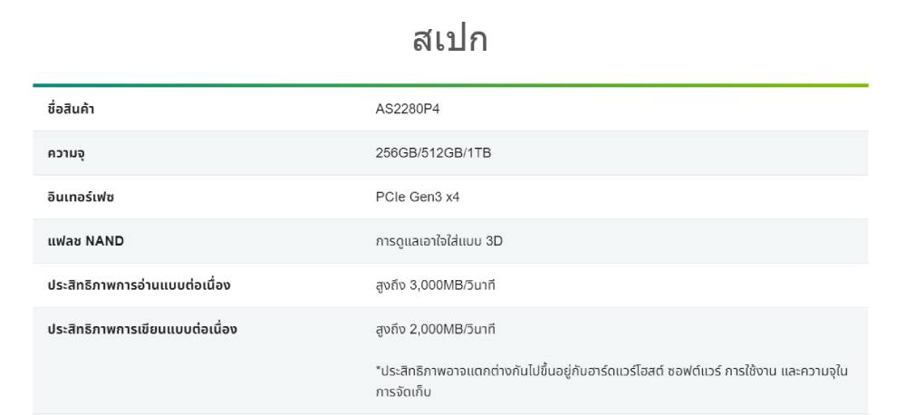 - ความเร็วในการอ่าน/เขียนต่อเนื่องสูงสุด 3000/2000MB/วินาที (ขึ้นอยู่กับความจุที่เลือก)