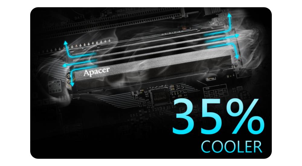 SSD AS2280Q4U มาพร้อมตัวกระจายความร้อนแบบพิเศษพร้อมการออกแบบการตัดแบบแยกส่วนเพื่อลดอุณหภูมิของ SSD PCIe 4.0 ได้อย่างมีประสิทธิภาพสูงสุดถึง 35% ดังนั้นเกมเมอร์จึงไม่ต้องกังวลเกี่ยวกับประสิทธิภาพที่ลดลงอันเนื่องมาจากอุณหภูมิที่สูงขึ้น