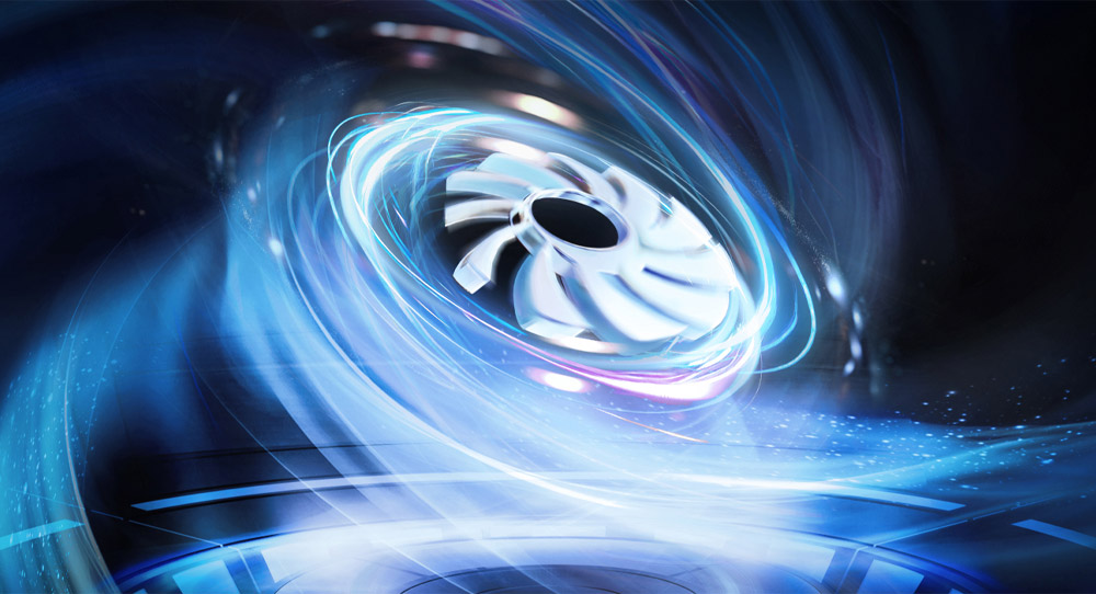 เทคโนโลยีระบายความร้อน WINDFORCE ที่มีการออกแบบพัดลมคู่ควบคู่กับการระบายอากาศแบบ 3D VortX เพื่อเพิ่มประสิทธิภาพการไหลเวียนของอากาศ