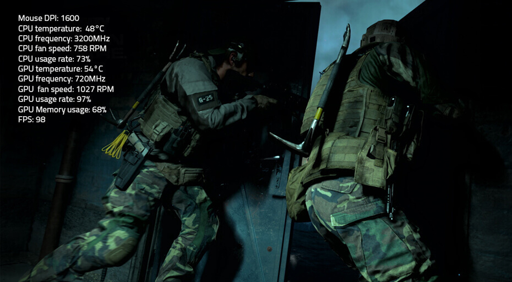 แดชบอร์ดจะแสดงข้อมูลฮาร์ดแวร์แบบเรียลไทม์ของคุณ รวมถึงแรงดันไฟ CPU ความเร็วสัญญาณนาฬิกา อุณหภูมิ เป็นต้น ส่วนที่ดีที่สุดคือจะไม่ถูกบล็อกโดยเกมใดๆ