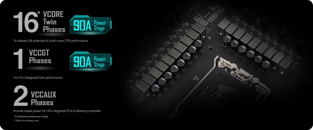 เพื่อให้แน่ใจว่า Turbo Boost และการโอเวอร์คล็อกสูงสุดของ CPU รุ่นใหม่ของ Intel เมนบอร์ดซีรีส์ GIGABYTE AORUS จึงติดตั้งการออกแบบ VRM ที่ดีที่สุดที่เคยมีมาพร้อมส่วนประกอบคุณภาพสูงสุด