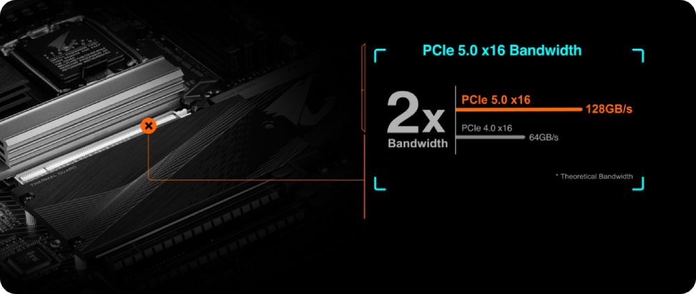 การออกแบบ PCIe 5.0 รองรับแบนด์วิดท์สองเท่าของ PCIe 4.0 และรับรองว่าเข้ากันได้กับ GPU ล้ำสมัยที่เปิดตัวในอีกไม่กี่ปีข้างหน้าได้อย่างเต็มศักยภาพ