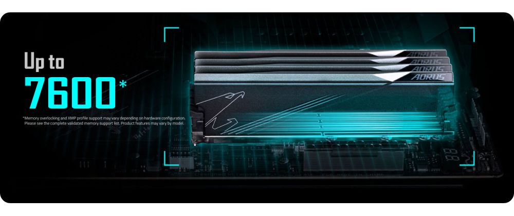 AORUS นำเสนอแพลตฟอร์มที่ผ่านการทดสอบและพิสูจน์แล้วซึ่งมีความสามารถในการโอเวอร์คล็อกหน่วยความจำได้สูงถึง 7,600 ขึ้นไป สำหรับหน่วยความจำ DDR5 XMP ผู้ใช้ทุกคนต้องทำให้แน่ใจว่าโมดูลหน่วยความจำรองรับ XMP และเปิดใช้งานฟังก์ชัน XMP บนเมนบอร์ด AORUS ของตน