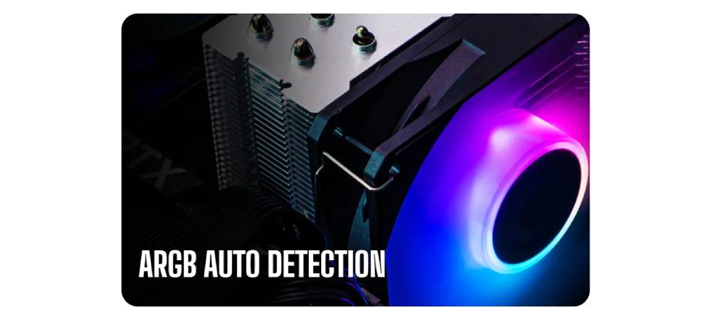 ระบบไฟ LED ที่ใช้งานง่ายจะให้แสงสเปกตรัม ARGB จะเริ่มต้นทำงานโดยอัตโนมัติหรือการปรับแต่ง ARGB เต็มรูปแบบผ่านการเชื่อมต่อส่วนหัว 3-pin ผ่านโปรแกรมปรับแต่ง