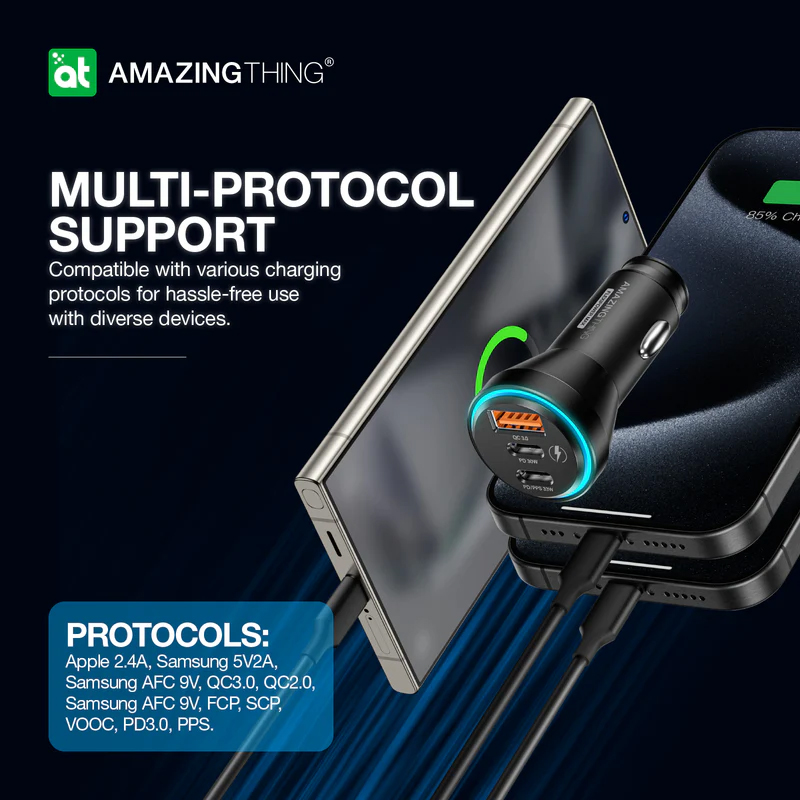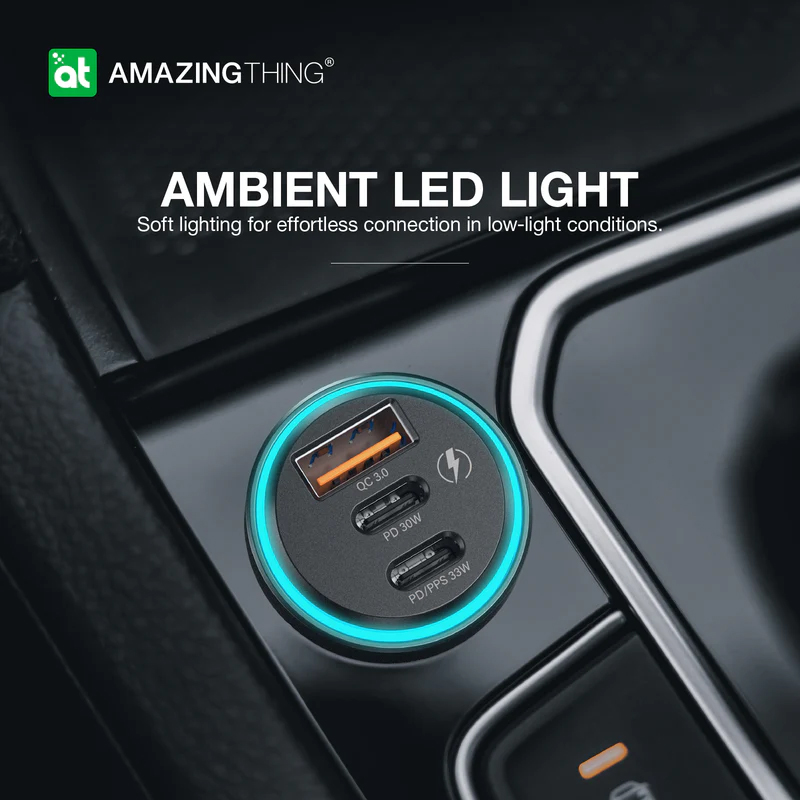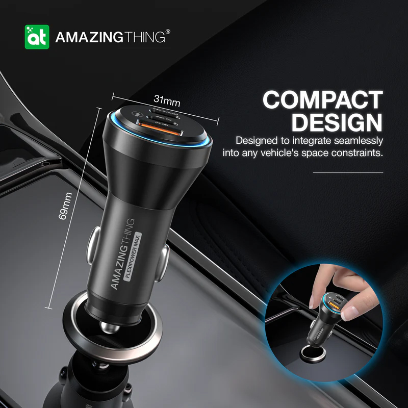 AMAZINGthing Car Charger 1 USB-A / 2 USB-C มีการออกแบบมาอย่างกะทัดรัด ขนาดเล็ก พกพาและนำมาใช้งานได้อย่างสะดวกสบาย