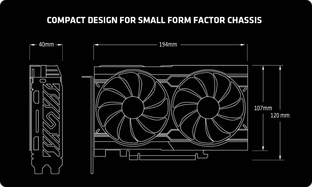- Memory: 4GB/64 bit DDR6. 18 Gbps Effective