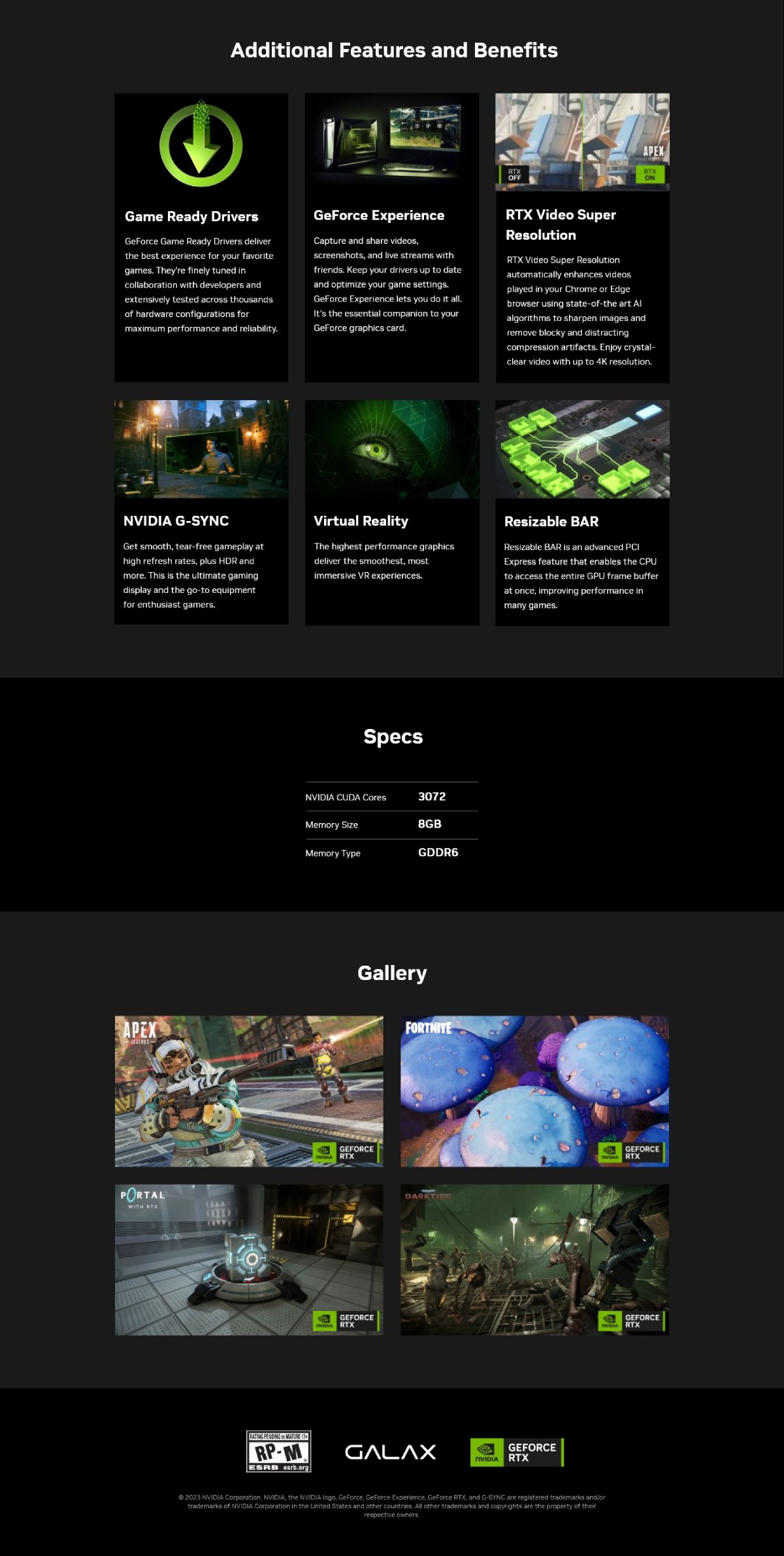 8GB GDDR6 128-bit/DP*3/HDMI 2.1/DLSS 3