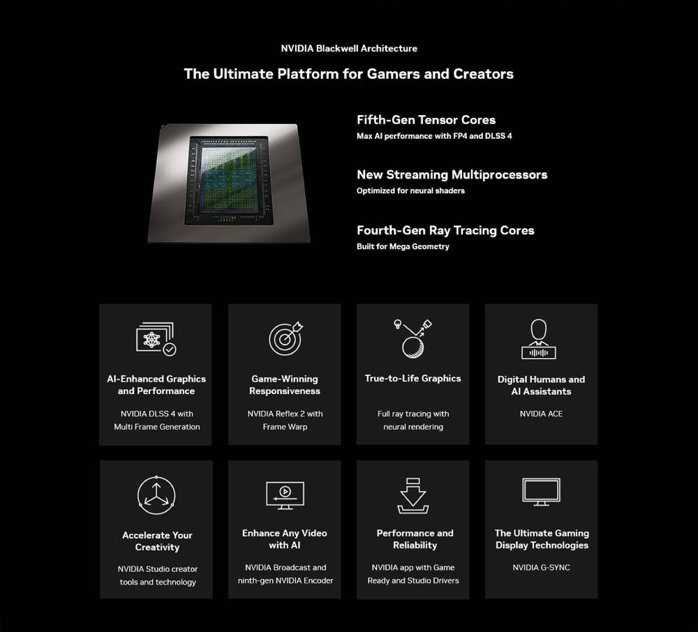 - ขับเคลื่อนด้วยสถาปัตยกรรม NVIDIA Blackwell และ DLSS 4