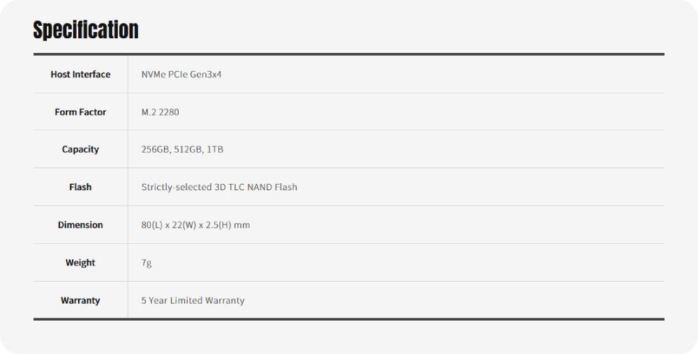 เพิ่มการเปิดตัวเกมและข้อมูลโปรแกรมเข้าถึงด้วยอ่าน/เขียน PCIe Gen3x4 ความเร็วของสูงถึง 3200/2000 MB/s ประสบการณ์ฉับไวและประสิทธิภาพของระบบที่เสถียรและสามารถรักษาได้อย่างง่ายดายขึ้นด้วยของคุณปริมาณงานสูง