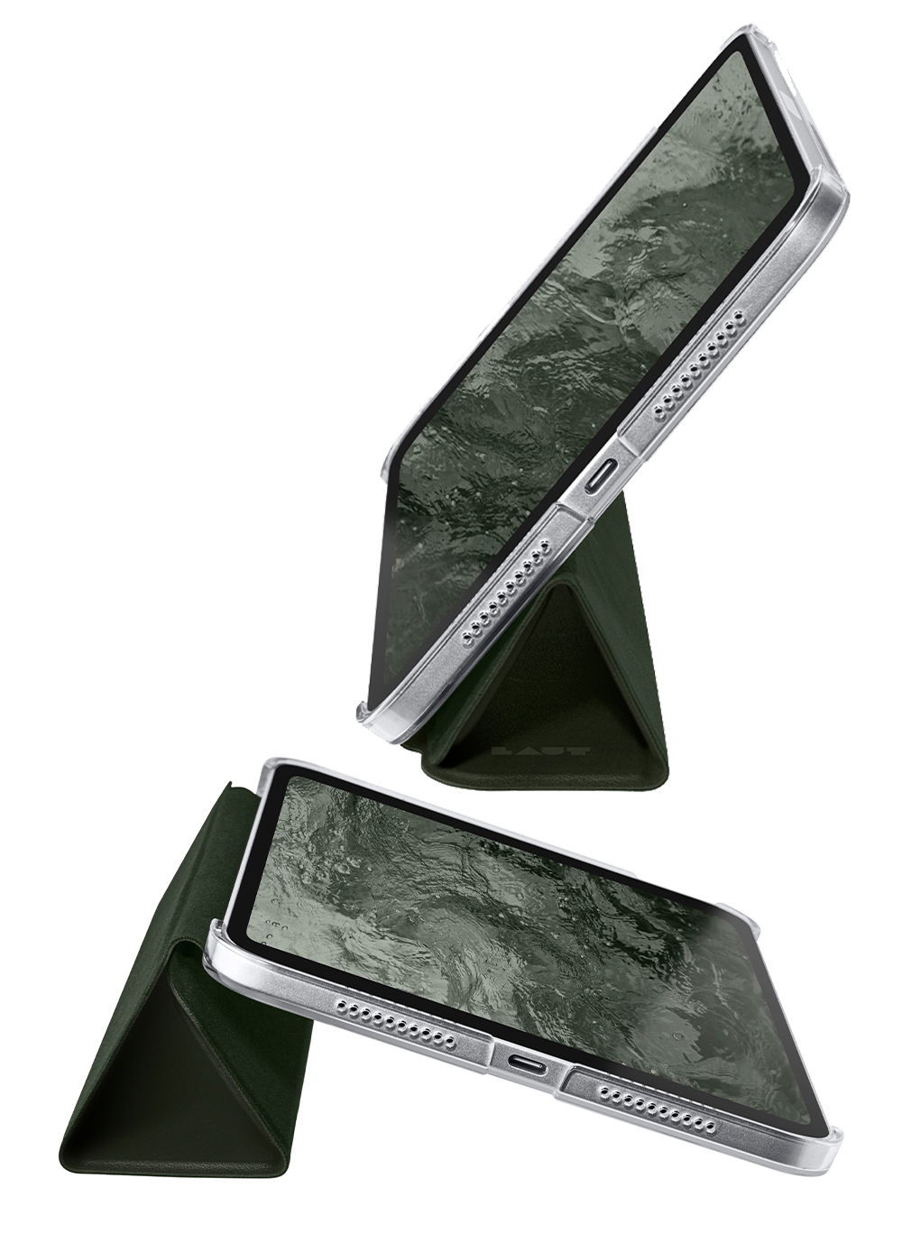 เคส LAUT iPad Mini7 HUEX-Military วัสดุผลิตจาก PU Leather เกรดคุณภาพ + PC ใสด้านหลัง โชว์สีสันของตัวเครื่องได้อย่างชัดเจน ผิวสัมผัสบาง เรียบ ทำให้สามารถถือจับใช้งานได้อย่างสะดวก สบายมือ ฝาปิดแบบแม่เหล็ก ทำให้ Auto-Sleep ทำงานได้อย่างไร้รอยต่อ สไตล์การพับแบบ Origami พับได้สะดวกและหลากหลาย มี Pencil storage สามารถใส่ในปก สามารถดึงออกมาใช้งานง่าย