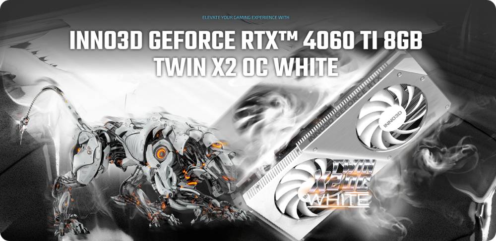 INNO3D ขอแนะนำการ์ดจอรุ่นใหม่ล่าสุดจากกลุ่มผลิตภัณฑ์ INNO3D GeForce RTX 4060 Ti TWIN X2 OC WHITE DLSS 3 ที่ใช้สถาปัตยกรรม Ada ล้ำสมัยของ NVIDIA การ์ดจอ INNO3D TWIN X2 OC WHITE ที่มีสล็อตคู่ซึ่งเหมาะสำหรับระบบที่มีขนาดกะทัดรัด จึงเหมาะอย่างยิ่งสำหรับการติดตั้งการ์ดจอ การ์ดจอที่ล้ำสมัยนี้ไม่เพียงแต่ให้ประสิทธิภาพที่ยอดเยี่ยมเท่านั้น แต่ยังมีดีไซน์ร่วมสมัยที่สะดุดตาอีกด้วย