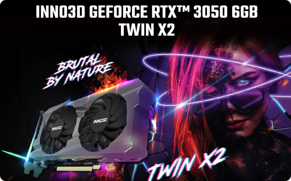 INNO3D® ได้ประกาศเปิดตัว INNO3D® GeForce RTX™ 3050 TWIN X2 OC ใหม่ในกลุ่มผลิตภัณฑ์ RTX™ 30 Series ที่ขับเคลื่อนด้วยสถาปัตยกรรม NVIDIA® Ampere ขั้นสูง ระบายความร้อนด้วยพัดลมคู่ขนาด 9 ซม. เพื่อรักษาอุณหภูมิให้เหมาะสมเมื่อการ์ดใบนี้กำลังขับเคลื่อนเซสชันการเล่นเกมของคุณ