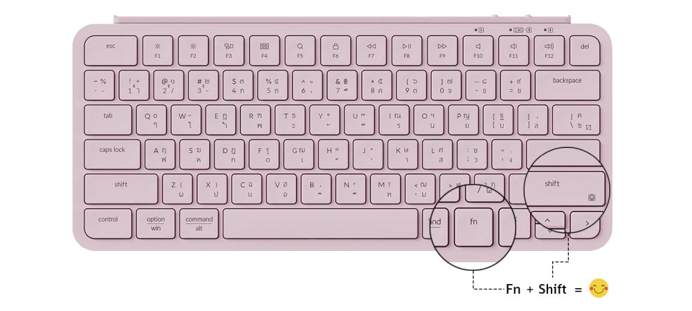 เลือก Emoji ง่ายๆ ขณะพิมพ์ได้เลย โดยการกด Fn+Shift : Emoji ด้วยมือขวา แสดงออกถึงความรู้สึกได้ทันที