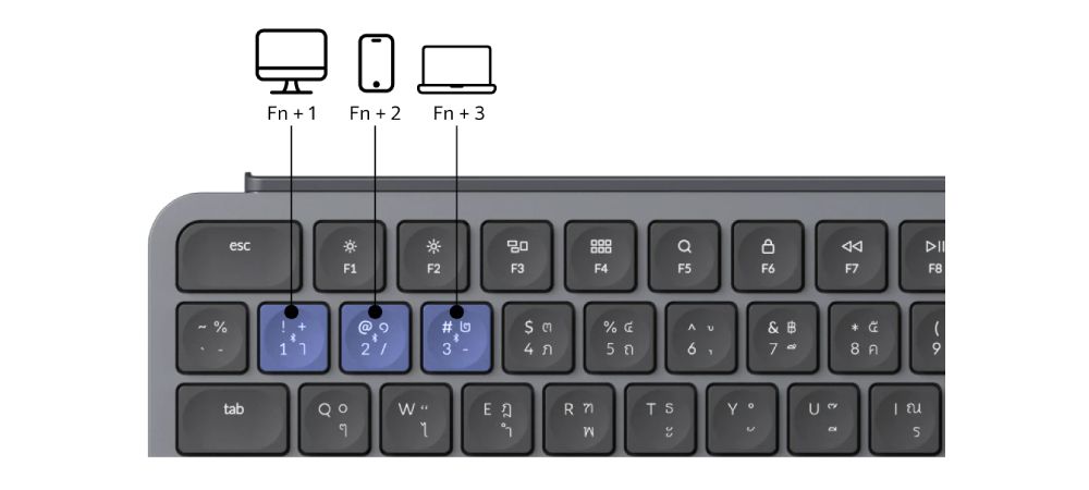 เชื่อมต่อไร้สายหลายอุปกรณ์ ด้วยคีย์บอร์ดตัวเดียว เชื่อมต่อกับ โทรศัพท์ แท็ปเล็ต พีซี หรือ แมค เชื่อมต่อ 3 อุปกรณ์ผ่านบลูทูธ และ 1 อุปกรณ์ผ่าน 2.4Ghz