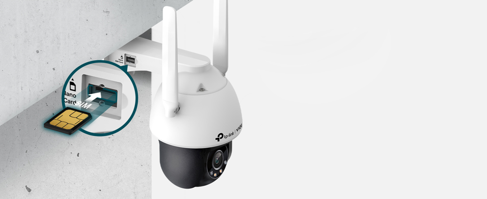 ไม่จำเป็นต้องเชื่อมต่อเครือข่ายผ่านสาย เพียงเสียบซิมการ์ดแบบนาโน จากนั้นกล้องของคุณก็พร้อมเชื่อมต่อเครือข่ายมือถือ 4G LTE ด้วยการติดตั้งที่ไม่ยุ่งยากให้คุณสอดส่องได้อย่างง่ายดายแม้ในสถานที่ที่ไม่มีอินเทอร์เน็ต เช่น ฟาร์มปศุสัตว์, ป่า, หรือไซต์งานก่อสร้าง