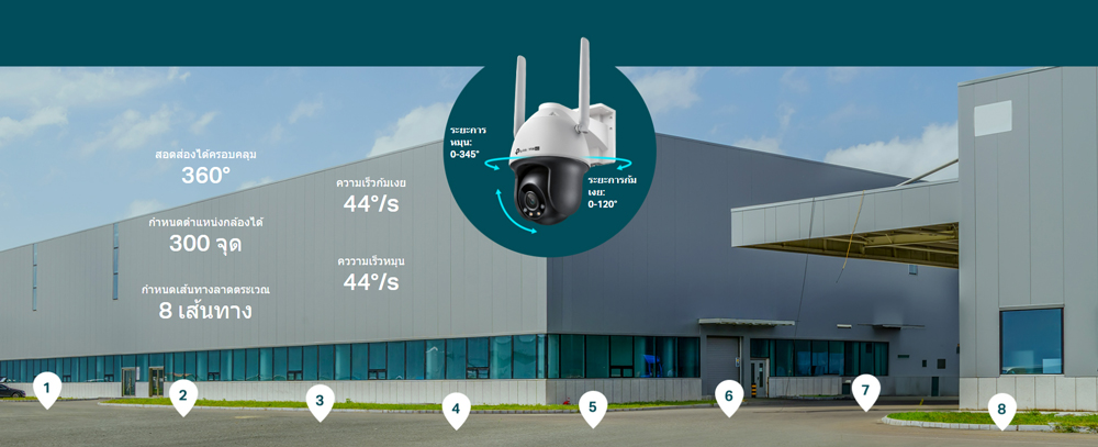 ครอบคลุมทุกมุมมองที่ต้องการด้วยกล้องที่ปรับหมุนได้ของ VIGI กำหนดเส้นทางการลาดตระเวณและตั้งค่าการติดตามความเคลื่อนไหวอัตโนมัติ เพื่อเป็นตัวเลือกในการตรวจตราพื้นที่อย่างชาญฉลาด และช่วยปรับปรุงประสิทธิภาพในการรักษาความปลอดภัยให้กับทรัพย์สินของคุณ