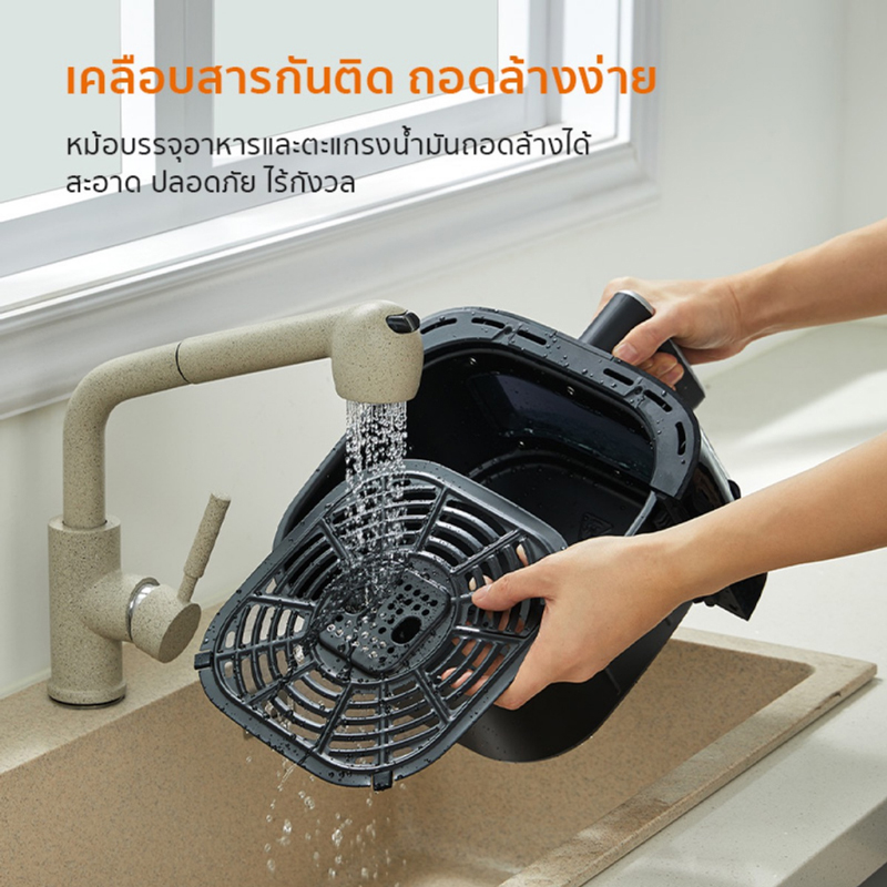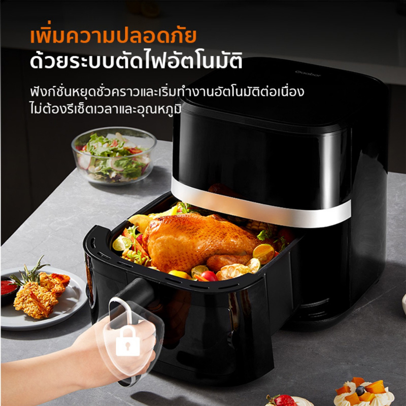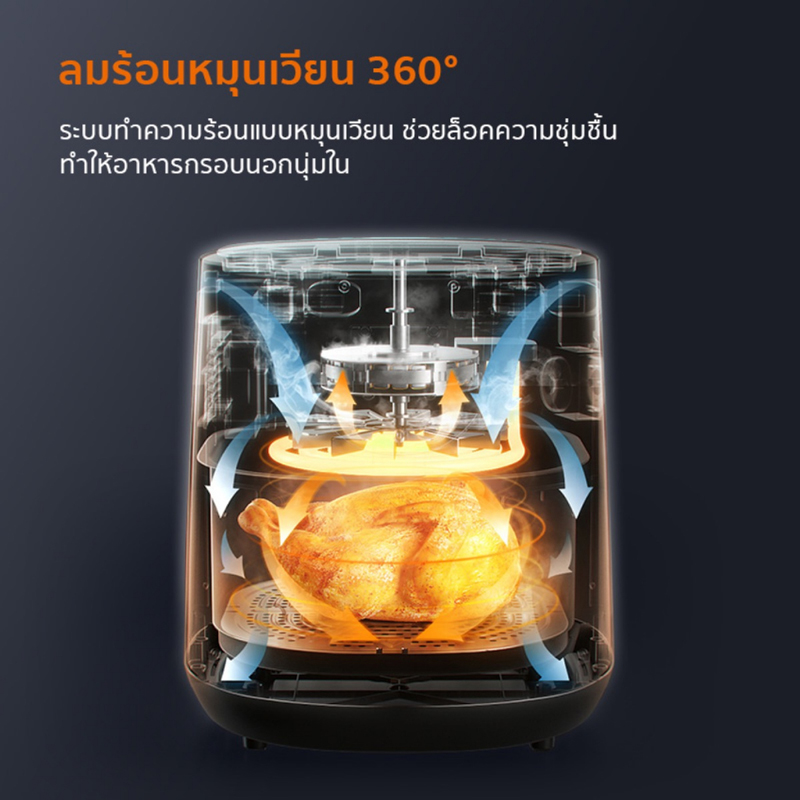 อิ่มจุใจได้ทั้งครอบครัวในหม้อเดียวด้วยความจุขนาด 6.5 ลิตร มาพร้อมระบบทำความร้อนแบบหมุนเวียน ช่วยล็อกความชุ่มชื้น เพื่อให้อาหารกรอบนอกนุ่มใน อีกทั้งยังมีฝากระจก สามารถมองเห็นอาหารขณะปรุงสุกได้ เพิ่มความปลอดภัยอีกหนึ่งขั้นด้วยระบบตัดไฟอัตโนมัติเมื่อพบว่ามีการดึงตะกร้าทอดออก และจะเริ่มทำงานต่อเมื่อใส่กลับเข้าไป โดยไม่ต้องตั้งค่าเวลาและอุณหภูมิใหม่ เพื่อความสะดวกขณะใช้งาน