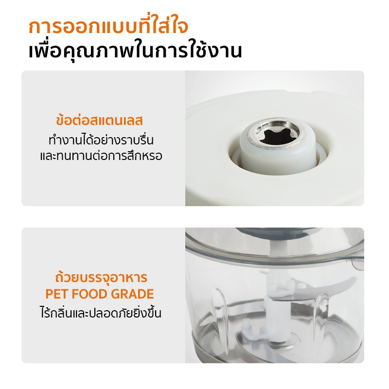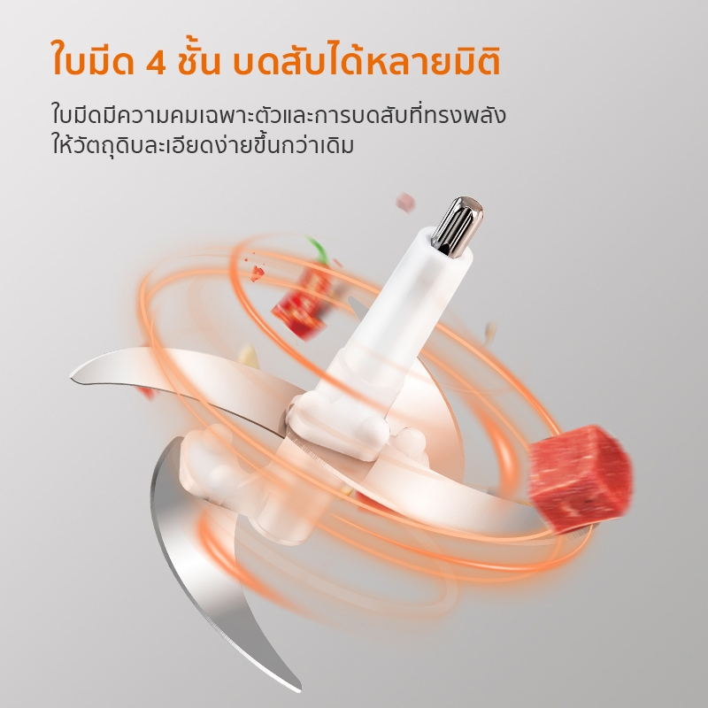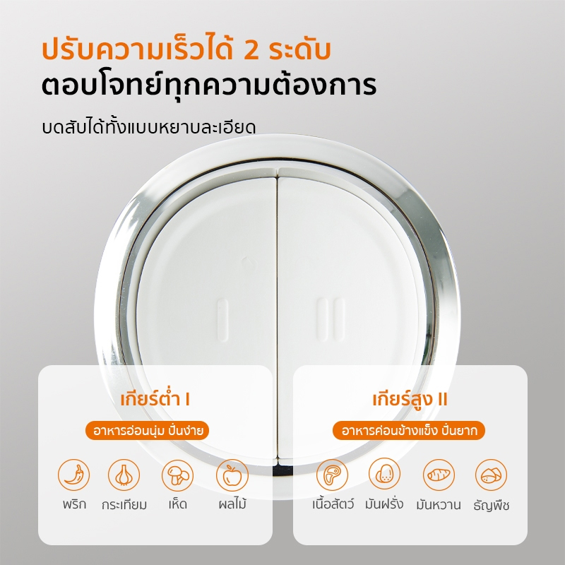 ตัวช่วยสำหรับเตรียมวัตถุดิบเพื่อนำไปประกอบอาหาร ไม่ว่าจะบดสับพริก กระเทียม หรือเนื้อสัตว์ก็ช่วยประหยัดแรงและเวลาด้วยเครื่องบดสับอาหาร รุ่น MG20M-WH02A จากแบรนด์ Gaabor สามารถปรับความเร็วได้ 2 ระดับ ผสานกับความคมของใบมีด 4 ชั้น ช่วยให้วัตถุดิบละเอียดเร็วขึ้น อีกทั้งรูปลักษณ์มีความเรียบง่ายและทันสมัย สามารถวางบนเคาน์เตอร์ครัวได้อย่างลงตัว
