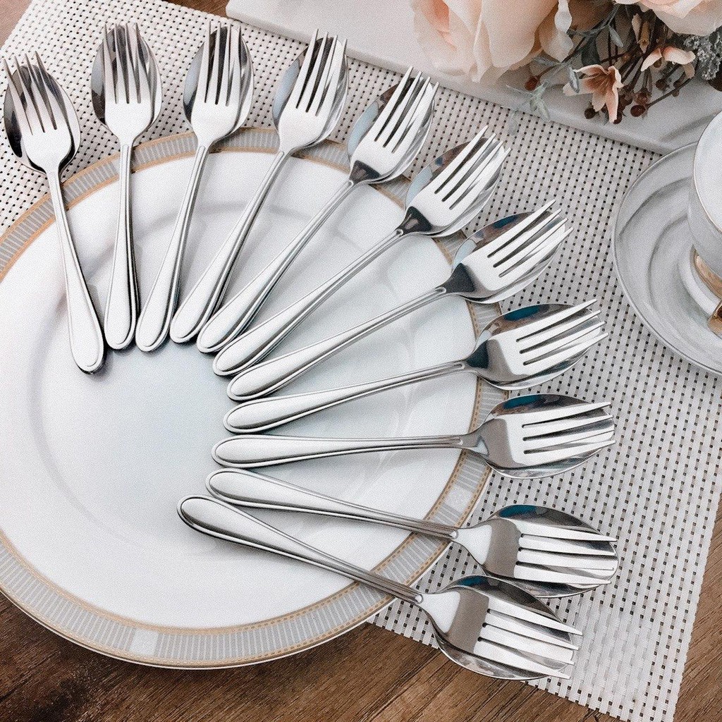Twin Fish ช้อนส้อม 12 คู่ ตรา Twin Fish เงา สวย หนา 2mm. เบอร์ 24