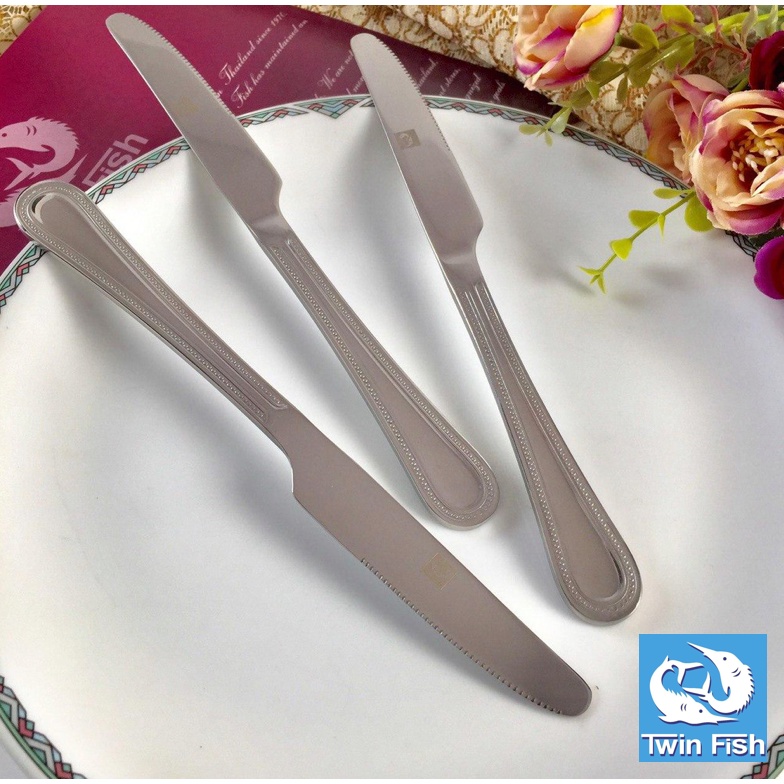 Twin Fish มีดคาว มีดสเต็ก มีดอาหารเช้า หนา 4.0 มมลายจุด ( 3 ชิ้น / ชุด ) รหัส 81-06