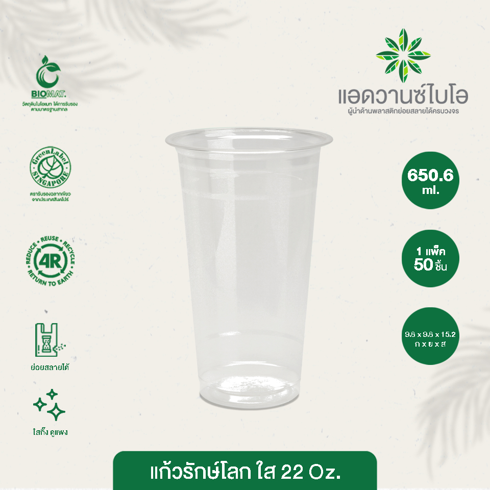 - ผลิตจากวัสดุ Bio mat - ขนาด : 22 ออนซ์ - บรรจุ 50 ชิ้น / แพ็ค