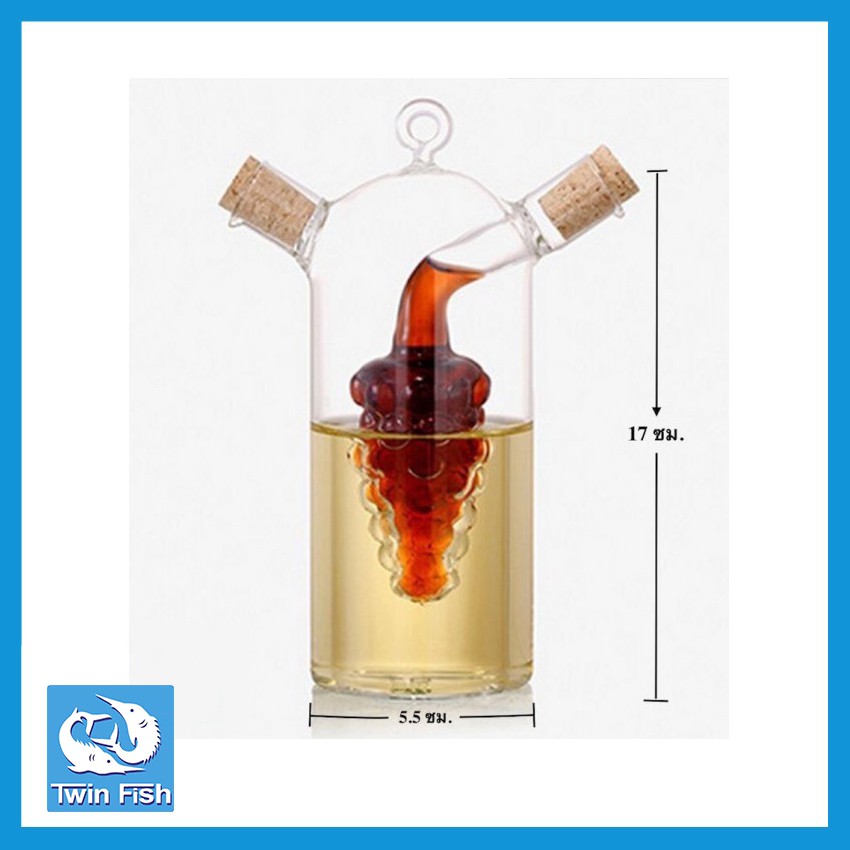 Twin Fish ขวดแก้วทรงกระบอกใส่น้ำมันมะกอกและน้ำส้มสายชู พร้อมจุกปิดไม้ รหัส GOV-4