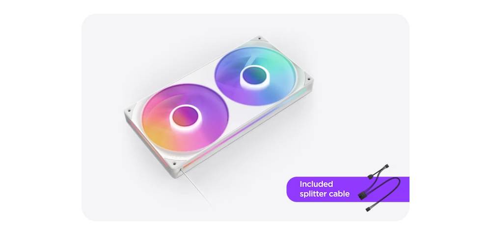 เพียงเชื่อมต่อสายเคเบิลเส้นเดียวเข้ากับตัวควบคุม NZXT (จำหน่ายแยกต่างหาก) เพื่อควบคุมแสงและความเร็วผ่านซอฟต์แวร์ NZXT CAM หรือเชื่อมต่อกับขั้วต่อ ARGB 5V ของเมนบอร์ดโดยใช้สายแยกที่ให้มา