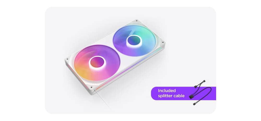 เพียงเชื่อมต่อสายเคเบิลเส้นเดียวเข้ากับตัวควบคุม NZXT (จำหน่ายแยกต่างหาก) เพื่อควบคุมแสงและความเร็วผ่านซอฟต์แวร์ NZXT CAM หรือเชื่อมต่อกับขั้วต่อ ARGB 5V ของเมนบอร์ดโดยใช้สายแยกที่ให้มา