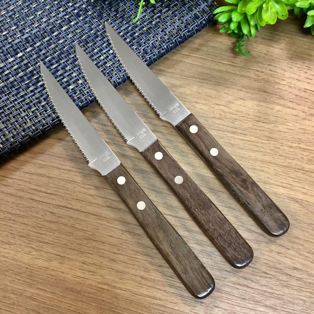 Twin Fish มีดสเต็กด้ามไม้ ฟันปลา ปลายแหลม 4นิ้ว (3 ชิ้น / ชุด )Twin Fish รหัส K51-7351/4S