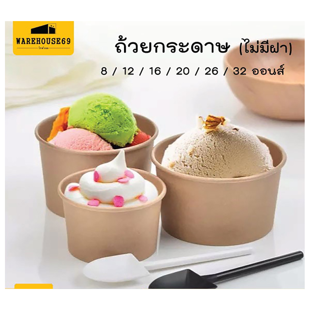BIOPACK ชามกระดาษ (ถ้วยคราฟ 26 oz) ชามก๋วยเตี๋ยว ถ้วยซุป ถ้วยไอติม ถ้วยแบ่ง ถ้วยขนม ถ้วยใส่อาหารคาว-หวาน ((รุ่นไม่มีฝา)) [[50 ใบ]]