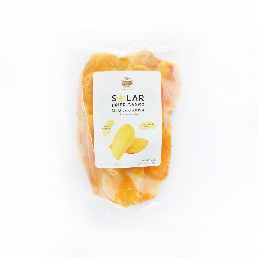 เราใช้มะม่วงที่สุกมาอบแห้ง เพื่อทำให้รสชาติหวานแทนที่น้ำตาลที่เราไม่ได้ใส่เข้าไปค่ะ เป็นผลไม้อบแห้งเพื่อสุขภาพ 100%